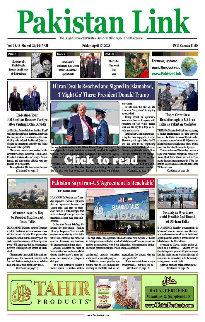 Read the current/breaking news and the weekly issues at: www.PakistanLink.com