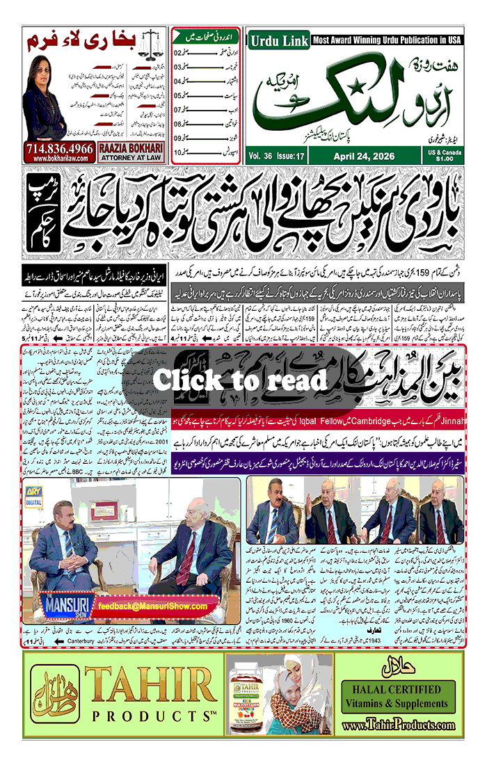 “Pakistan Link and Urdu Link are the most subscribed USA based Pakistani American newspapers, published in English and Urdu languages. The newspapers are printed weekly and distributed throughout the United States and Canada".