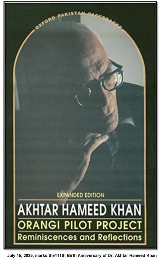 Dr Akhtar Hameed Khan (AHK) was a social development activist par excellence. His nafees personality was an embodiment of religious, social, and ethical values of Indo-Muslim culture. Seven decades ago, AHK left the prestigious Indian Civil Service (ICS) to devote his energies and services for uplifting the lives of the poor and the underprivileged masses. He pioneered social uplift schemes like microcredit and microfinance initiatives, farmers' cooperatives, and rural training. His major achievements in social work include the development of the Rural Development Academy, Comilla, East Pakistan (now Bangladesh), and Orangi Pilot Project, Karachi.