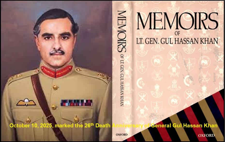 Memoirs of Lt. Gen. Gul Hassan Khan is an important book. The author — the last Commander-in-Chief of Pakistan Army — has candidly summarized highlights of his 30-year military career and the background details about two wars and three Martial Laws. It is a historic document — an essential reading for students of history and for all civilian and military policy makers in Pakistan so that they can learn from mistakes made during the past seven decades and benefit greatly from General Gul Hassan’s advice and insights on politics and military affairs.