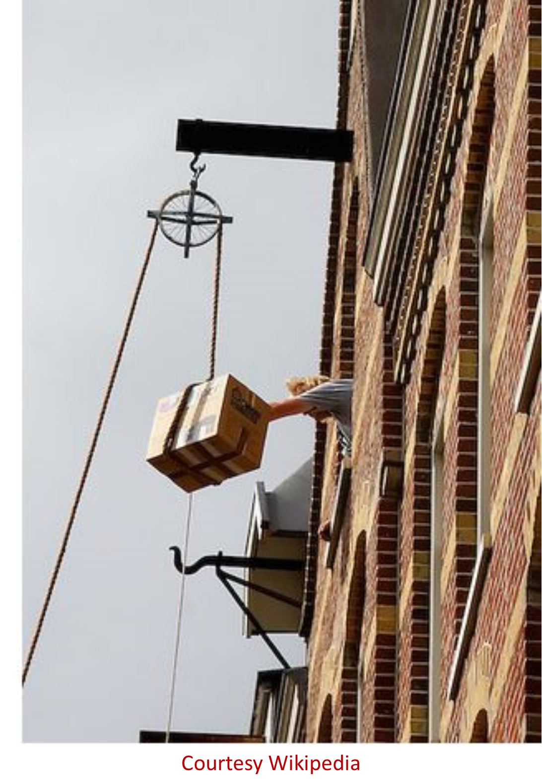 Making the house narrow compromised the area of the stairwell. Moving the furniture and goods up through the narrow and steep stairwell became a huge problem. Also, many spiral staircases added to the hazard. The residents came up with an ingenious solution, i.e. pulleys, external hooks and big windows. The large objects were hoisted up with pulleys and rope and loaded inside the house through large windows. The buildings were purposely made to tilt slightly forward. That prevented the dangling furniture from hitting the walls or windows of the house while it was being hauled up.