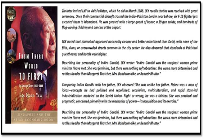 Describing the personality of Indira Gandhi, LKY wrote: “Indira Gandhi was the toughest woman prime minister I have met. She was feminine, but there was nothing soft about her. She was a more determined and ruthless leader than Margaret Thatcher, Mrs Bandaranaike, or Benazir Bhutto.”