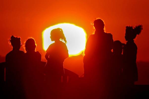 File image of the sun silhouetting visitors to Signal Hill during a heatwave - Luis Sinco / Los Angeles Times