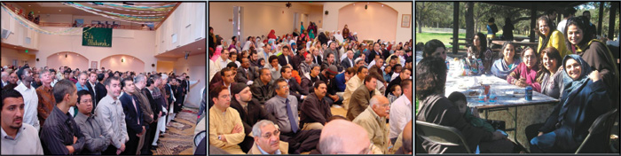 Eid prayers at SALAM. (Center): Sacramento Eid prayers.