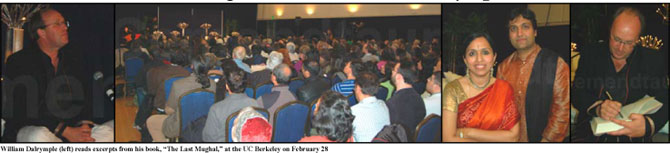 On Tuesday, February 28, 2012, over two hundred people attended a performance of reading and music organized by the Berkeley Urdu Initiative at the UC Berkeley. Celebrated historian of late Mughal era, William Dalrymple, read excerpts from his book, “The Last Mughal.” Poetry, beautifully sung by vocalist Vidya Shah punctuated the reading. Shah was accompanied by tabla player Vishal Nagar.