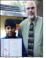 Farhad Ghazali, a 6th grade (GATE) student at the Agnes Baptist Elementary School, Modesto, was honored last week for his distinguished position. Picture shows Farhad with his class teacher, Mr Capenter.