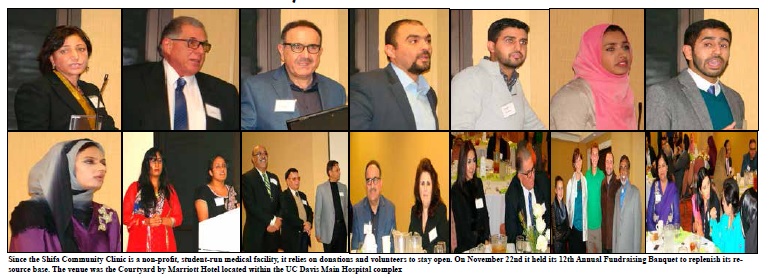 Since the Shifa Community Clinic is a non-profit, student-run medical facility, it relies on donations and volunteers to stay open. On November 22 nd it held its 12 th Annual Fundraising Banquet to replenish its resource base. The venue was the Courtyard by Marriott Hotel located within the UC Davis Main Hospital complex. Over 100 people attended this multi-ethnic and religious gathering which started with guest arrival and social mixer along with a silent auction.