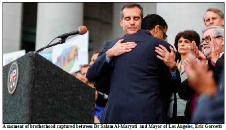 This rally for humanity is a testament to the strength of our nation. We were honored to have the Mayor of Los Angeles, Eric Garcetti and Mayor of San Bernardino, Carey Davis speak at the rally, along with numerous other esteemed leaders. Mayor Garcetti reminded us to not let these difficult times break us apart from each other, but rather bring us together.