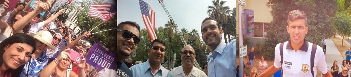 The event saw Sacramento at its best. It must have been really uplifting for this trio of heroes to be cheered on by a huge crowd in their town during a parade that took quite a while to travel a short distance of a few blocks. They were greeted by hundreds of American flags (Stars and Stripes of various sizes including a huge Old Glory hoisted by two cranes), cheering men, women, and children, members of various area organizations including American Muslim Voice (AMV) Foundation, CAIR-Sacramento and various groups including Christians, Jews, Arabs, Persians, Asians, Hispanics, Indians, Pakistani-Americans and motorcycle clubs. Now that is diversity!