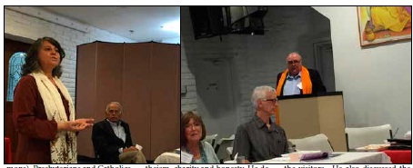 An introduction to Sikhism was provided by Mr Avinder Chawla who is secretary of the Temple. His talk touched on all the main aspects of Sikhism including monotheism, charity and honesty. He described how the Sikh Temples provide two meals every weekend to all people for free throughout the year without asking for any compensation or regard for the religion of the visitors. He also discussed the strict dress code followed by Sikhs and the explanation of the turban. The audience particularly enjoyed the demonstration that Mr Chawla gave of tying his turban. Unfortunately, after the events of 9/11 Sikhs have had to suffer greatly from hate crimes and discrimination in the United States as they are sometimes mistaken for persons from the Middle East.