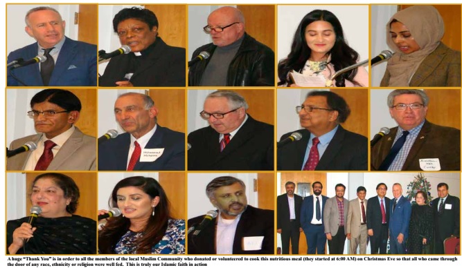 It is in this spirit that this report moves to the Sacramento AMV Chapter’s Christmas Eve effort to serve 1,000 meals to the homeless and needy at Loaves & Fishes on North C Street on December 24th. It would be an understatement to write that Sacramento has a homeless problem. A small “Tent City” is located within walking distance from the venue and it was good to note that some other groups too were outside on the street helping to spread some Christmas joy. But within Loaves & Fishes the second shift of Muslim volunteers greeted everyone coming inside with a “Merry Christmas” and a tray to fill up with a nice warm meal (the main course this year was Salisbury steak). As AMV Sacramento Chapter President Asif Sattar explained to a local television channel, this is a part of practicing our (Muslim) beliefs. A huge “Thank You” is in order to all the members of the local Muslim Community who donated or volunteered to cook this nutritious meal (they started at 6:00 AM) on Christmas Eve so that all who came through the door of any race, ethnicity or religion were well fed. This is truly our Islamic faith in action.