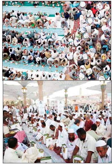 Pilgrims from the Kingdom and throughout the world are being served iftar meals after a long day of fasting as part of a service that brings together Muslims of many nationalities.
