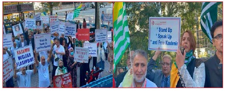 Holding banners and placards in their hands inscribed with “Wake UP Wake UP UN WAKE UP” “Indian Army Out of Kashmir” “We Demand Human Rights” “India: Free Kashmir” the participants expressed total solidarity with the oppressed people of Jammu and Kashmir.