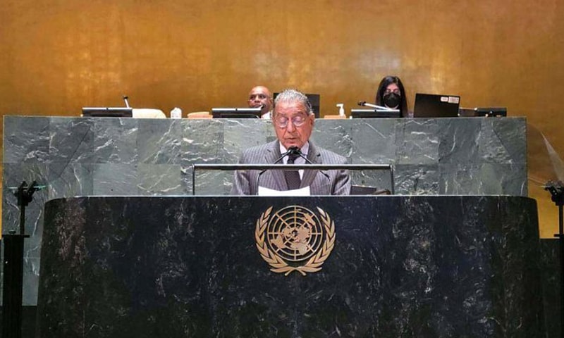 Munir Akram, Pakistan’s Permanent Representative to the UN, introduces the resolution on behalf of the Organization of Islamic Cooperation