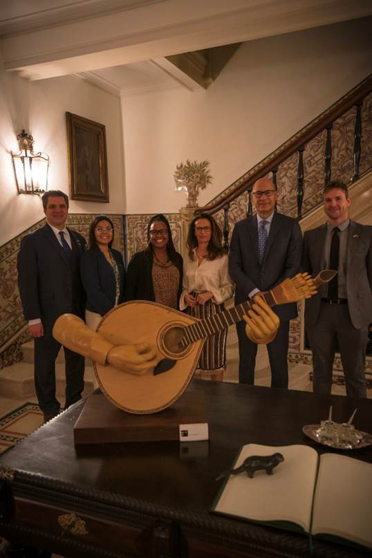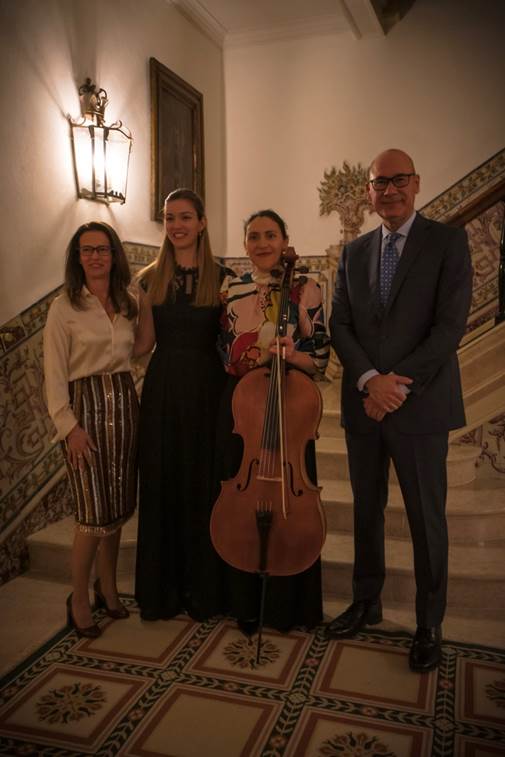 On March 9, 2023, Ambassador Duarte Lopes and his wife Mrs Paula Duarte Lopes hosted a classical music program at their historic Kalorama neighborhood residence with acclaimed artists Catarina Ferreira (cello) and Ines Andrade (piano). The ambiance was enchanting, and the music represented the vibrant and rich Portuguese culture. Ambassador Duarte Lopes gave a personal touch by sharing that some of the tunes played were his parents’ favorite ones.