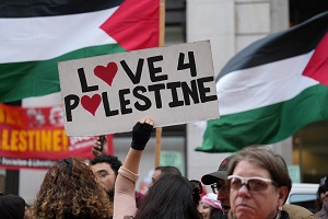 Demonstrating their solidarity, many Palestinians and their supporters held signs calling for an end to Israel’s 75-year occupation, ending the blockade of Gaza, continued resistance and calling for ending US aid to Israel. Several skirmishes broke out during the otherwise peaceful demonstration when members of opposing views tried to disrupt each other by attempting to enter the area of their detractors only to be remanded and forced back by police.