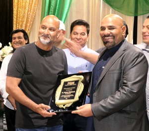 Next, Ali Sajjad Taj, the current Mayor of Artesia, California who also happens to be of Pakistani origin (a Lahori too) made a short speech. He shared his American success story with the crowd, how he came to the Los Angeles area from Pakistan in 1999 and by 2014 he was elected to the Artesia City Council and then became the mayor. He added that this is the third time that he is serving as mayor and is next running for the California State Assembly where he hopes to serve a remarkably diverse community. He also urged our community to please get engaged and involved in the local political process. Taj presented a certificate of recognition to the PCM team.