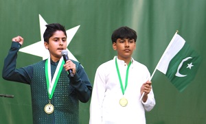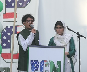 The evening started with an inspirational introduction by young Khalil Imran. It was followed by a recitation from the holy Qur’an by Ayaan Imran Ghazi with the English translation of the verses by Haram Muazzam. The national anthems of Pakistan and the United States were played next with children up on stage singing along, waving flags, making their parents and the entire community proud. This was followed by a reflective speech in Urdu by Hamna Khan which was well received.