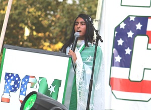 The last of the dignitaries to speak was our very own Khydeeja Alam, Executive Director of the California Commission on Asian and Pacific Islander American Affairs (CAPIAA). Her speech was an inspiration for all our young people, especially South Asians, whom she encouraged to aspire to serve in public office. She said that she was proud to be here amongst thousands of Pakistanis on behalf of her organization and presented a certificate to PCM for this beautiful occasion. PCM also presented tokens of appreciation to the dignitaries on behalf of the organization.