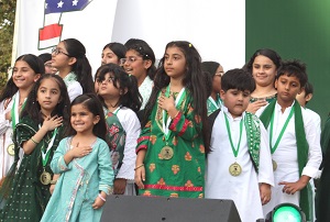 Next was the singing of “Pakistan Zindabad” (Long Live Pakistan) by Qasim Khan and its music thundered over Discovery Park and set the stage for the night’s theme, as this was an “Azadi (Freedom) Family Festival.” Qasim and his two friends rocked the park like no other. But that did not take away anything from the girls and other kids who performed or danced to Dil Say Mai Ne Dekha Pakistan and Mera Pakistan. Representing our college-going youth Zaina Saleemi also shared the benefits of and pride in her dual American and Pakistani heritage, something that many families here could relate to. And the closing of the segment (with all girls on stage) swaying/singing to “Dil Dil Pakistan” really was inspiring and colorful. There is a great deal of “soft power” in Pakistani culture which needs to be relayed in the Western world, including here in America, via such performances.