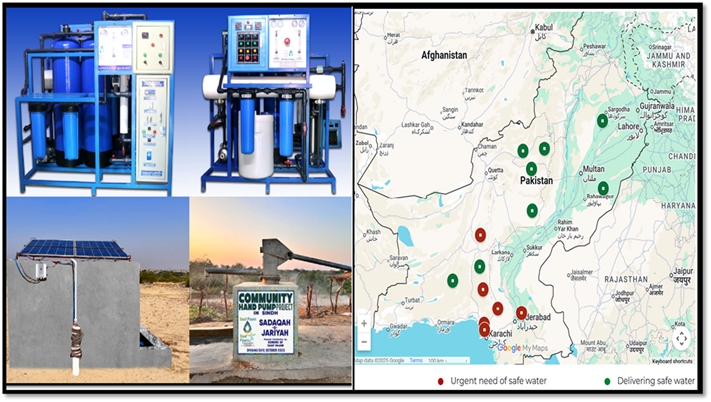 Founded by Abdul Majid Adam, a 1969 graduate of NED University, Karachi, Saaf Paani designs and engineers safe water systems for water-stressed regions across Pakistan. Currently, it is active in rural Sindh and parts of Karachi, where water salinity levels exceed safe limits (TDS > 1000). To address this, the organization installs Reverse Osmosis (RO) plants that reduce TDS to around 250, making the water safe to drink.