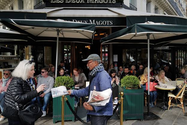 Each day, as he has for the past 52 years, the 73-year-old walks extensively on his rounds averaging 15 kilometers (9.5 miles) a day delivering papers to patrons in the cafés, restaurants and bars of the Saint-Germain-des-Prés neighborhood of the tony Latin Quarter during his eight-to-ten-hour seven-days a week schedule. In an era before people began turning to television news along with digital sources, he sold around 300 newspapers each day. Now, he said, he sells “roughly 30 copies a day.”