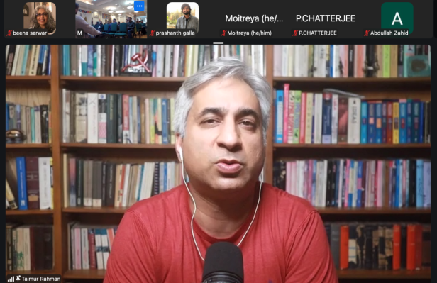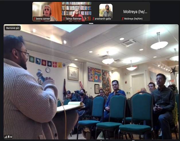 Dr Taimur Rahman addressing the hybrid audience at the event organised in Boston by BSAC in collaboration with Sapan - Screenshot