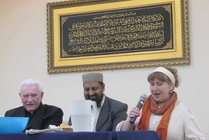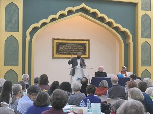 The afternoon started with a brief instruction by Helen Roland Cramer, Chairperson of the Celebration of Abraham Davis, and a member of the Methodist Church. Helen reminded us that the first event of this grouping was held in Woodland. And speaking of Woodland, introduced next was local Muslim community leader Khalid Saeed who has been instrumental in both mosque and bridge building in the area for over half a century. As one of the founders of the Woodland Mosque starting in the 1970’s Khalid shared a brief history of the area community and the grand opening of this Mosque a year ago. He said that it was an honor to see the three faiths coming together here and then introduced the three speakers representing each one, namely Father John Boll, Rabbi Leah Julian, and Imam Riaz Ahmed Qadri. Their speeches were long and informative, but unfortunately we have to be very brief here.