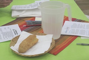 To be fair, as has already been mentioned, the presentations by all three speakers were certainly more detailed than what was included in this report but hopefully the direction of the content has been conveyed. And we will have to skip the details of the lengthy question and answer session moderated by Michael Hirsch (also from the Congregation Bet Haverim) here, except to add that it was a vigorous exchange and took up more time than it was scheduled to have. Due to time constraints, the scheduled “Table discussions” which were to follow had to be skipped, and we went to the “Bread and water ritual” which best reflects the sharing aspect of our lives as members of the human family.
