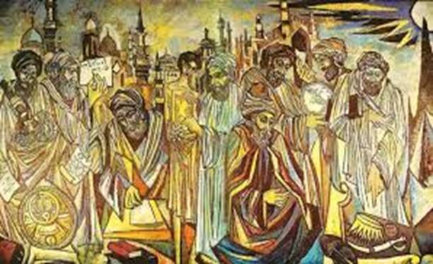 His monumental murals, in excess of thirty-five, adorn the halls of State Bank, Frere Hall Karachi; Lahore Museum; Punjab University; Mangla Dam; Aligarh Muslim University; Banaras Hindu University; Indian Institute of Geological Sciences; Islamic Institute in Delhi, and Abu Dhabi Power House, among others.