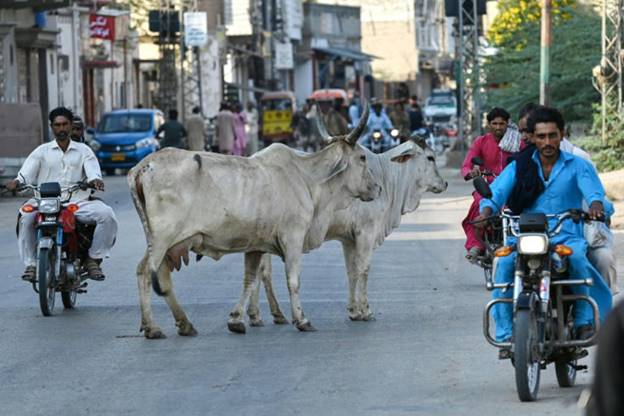 Cows -- considered sacred in Hinduism -- roam freely in Mithi city, as they do in neighbouring India.
