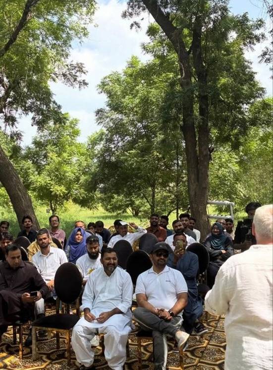 Soil discussion with Nick Padwick, Soil Food Web Consultant Wild Soils, at Rahuki Farms Pakistan. Organizers and participants alike came together to envision a Pakistan where soils are living systems rich in microbial life; where waste is reused as valuable organic inputs; where farmers thrive without monoculture and the ensuing over-reliance on chemical inputs; and where agriculture supports climate resilience and biodiversity rather than undermining it - Photo Trashit Pakistan