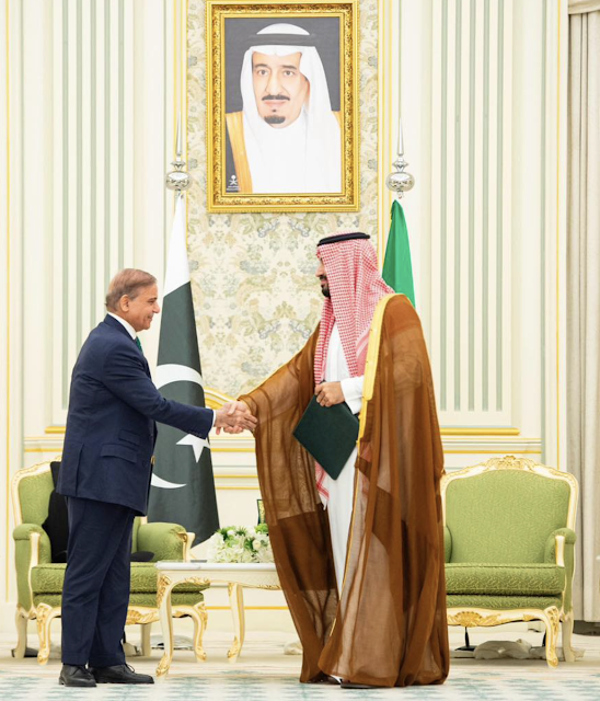 Pakistan PM Shahbaz Sharif(L) with Saudi Crown Prince MBS